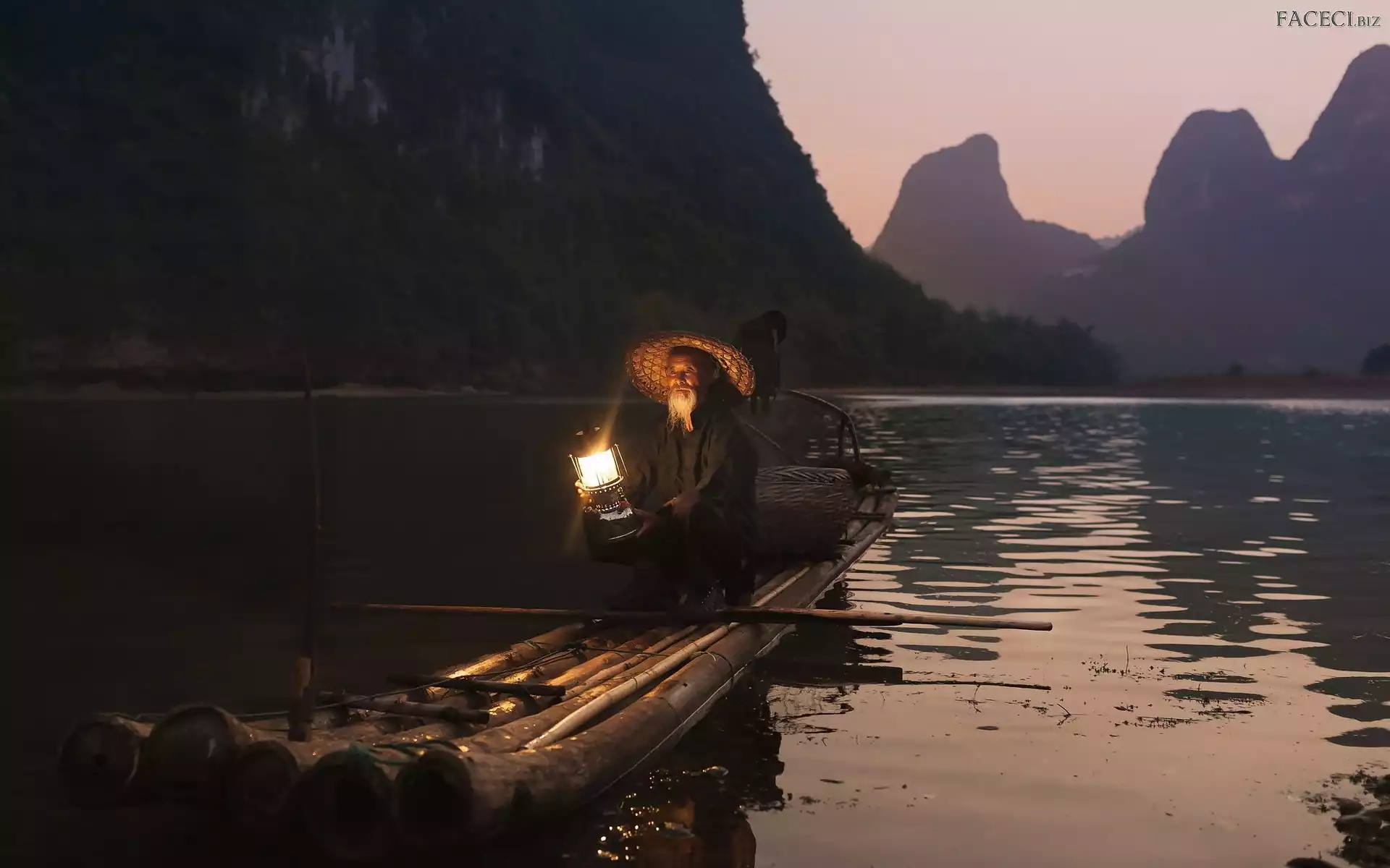 Lampa, Łódka, Jezioro, Góry, Mężczyzna - faceci.biz